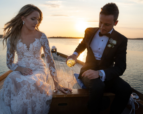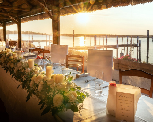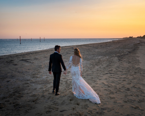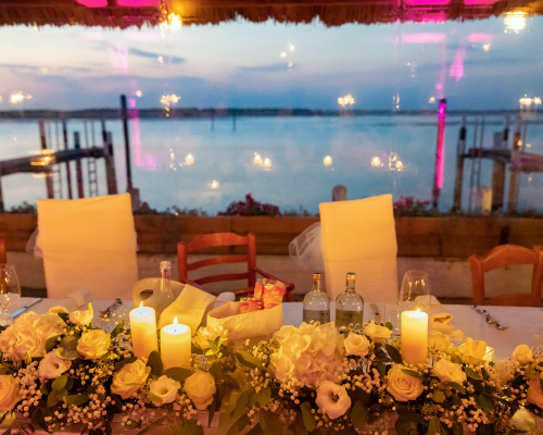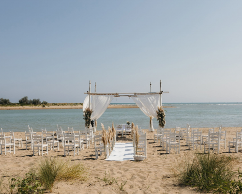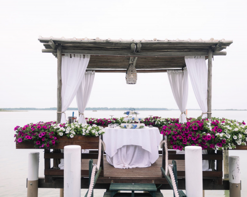 Nozze celebrate con rito civile e ricevimento nei tipici Casoni, tra fiori, conchiglie, candele e degustazioni di pesce. Per un "sì" elegante ed originale. Inoltre la possibilità di "Luna di miele" in compagnia, con gli amici al mare.