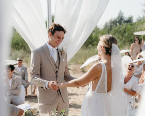 Bibione, o meglio un’area magica di questa spiaggia del litorale veneziano, ancora incontaminata, tra mare e laguna, nelle terre amate e frequentate da Hemingway, ancora oggi ricche di un fascino retrò, propone da quest’estate il matrimonio a piedi scalzi sulla spiaggia, con rito civile. La sposa arriva dal mare e lo sposo attende ansioso il suo arrivo nella postazione del bagnino, alla bay watch.